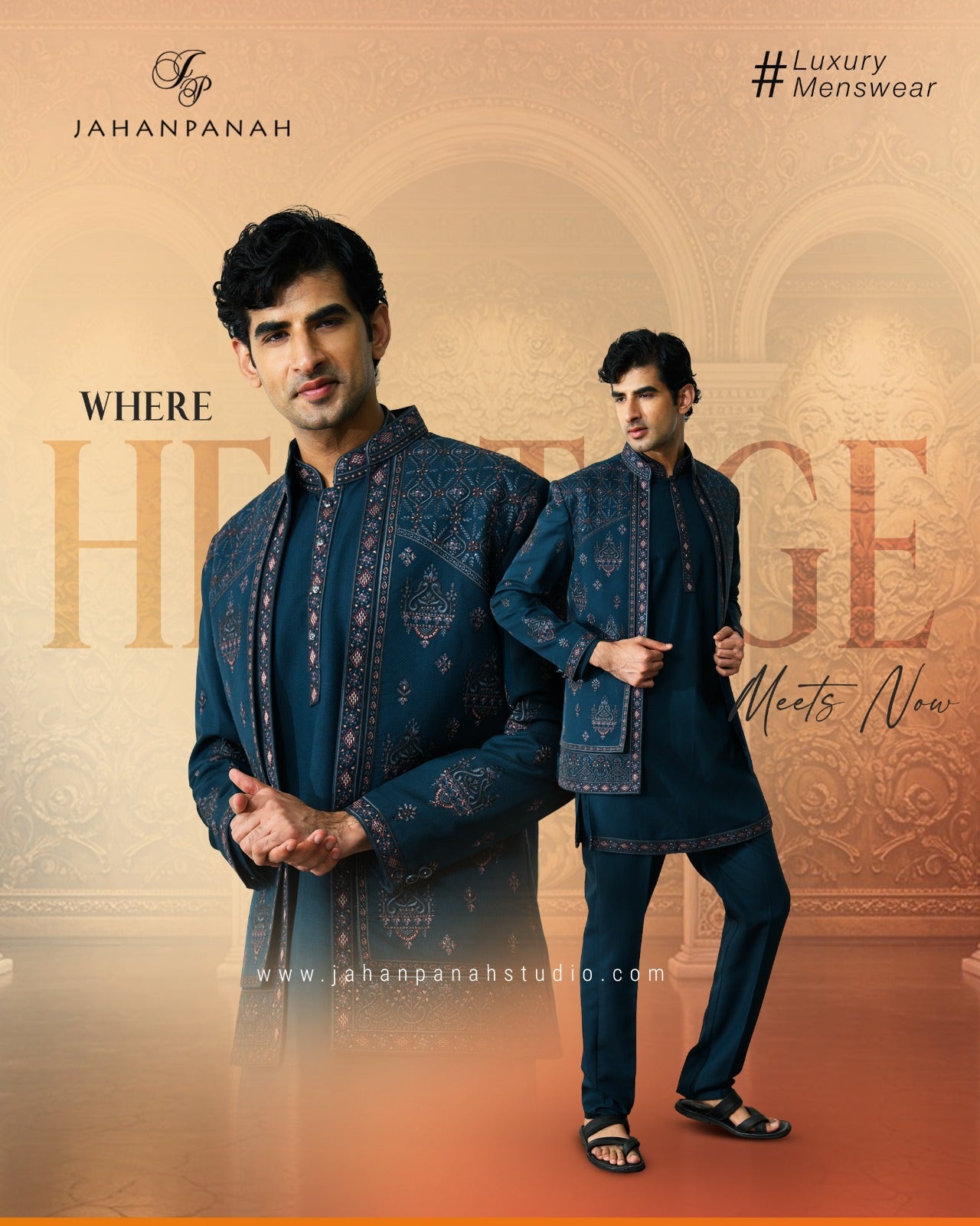 Discover the newest collections from Jahanpanah, featuring designer kurtas, Indo-western outfits, and luxury ethnic wear crafted for weddings, engagements, and festive celebrations.
