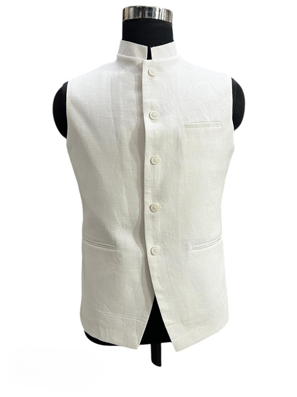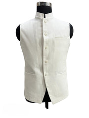 Men’s Classic Lemon Linen Nehru Waistcoat