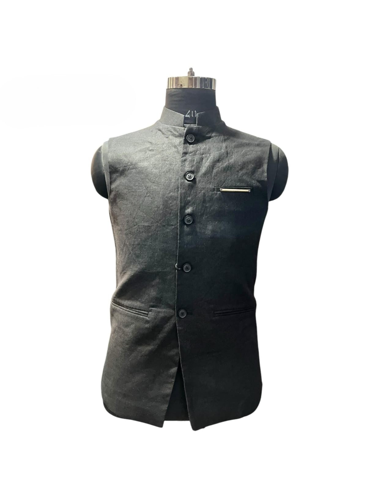Men’s Elegant Grey Nehru Waistcoat with Sleek Finish