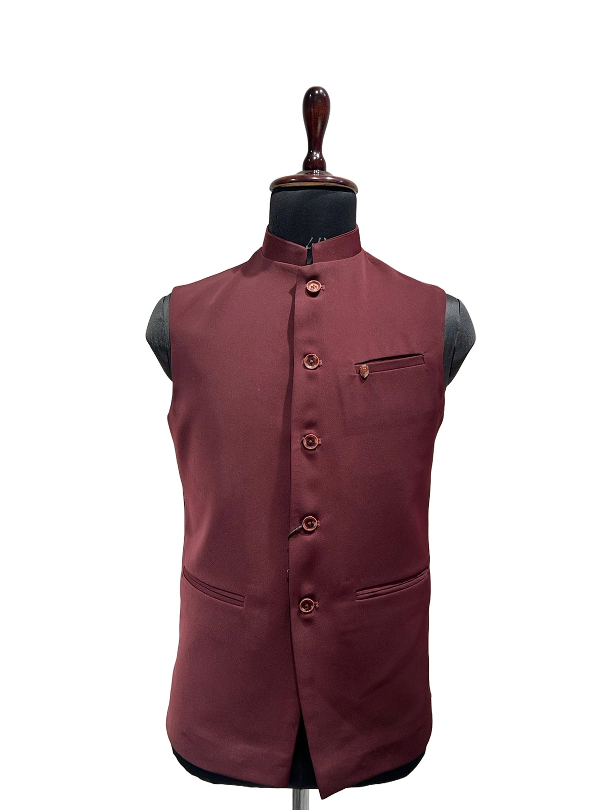 Men’s Classic Mehroon Satin Nehru Waistcoat with Sleek Detailing