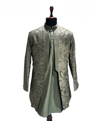 Sea Green Textured Shrug Kurta Set
