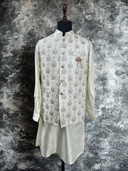 Cream Embroidered Waistcoat Kurta Set