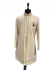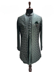 Grey & Ivory Brocade Shrug Kurta Set