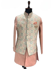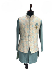 Gold Kurta with Printed Waistcoat Set